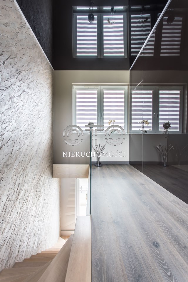 Z sypialni i gabinetu oraz salonu na drugim poziomie rozciąga się unikatowy widok na otwartą przestrzeń z bujną zielenią.