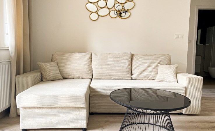 Mieszkanie w pełni wyposażone i umeblowane z dużą ilością szaf i miejsca do przechowywania.